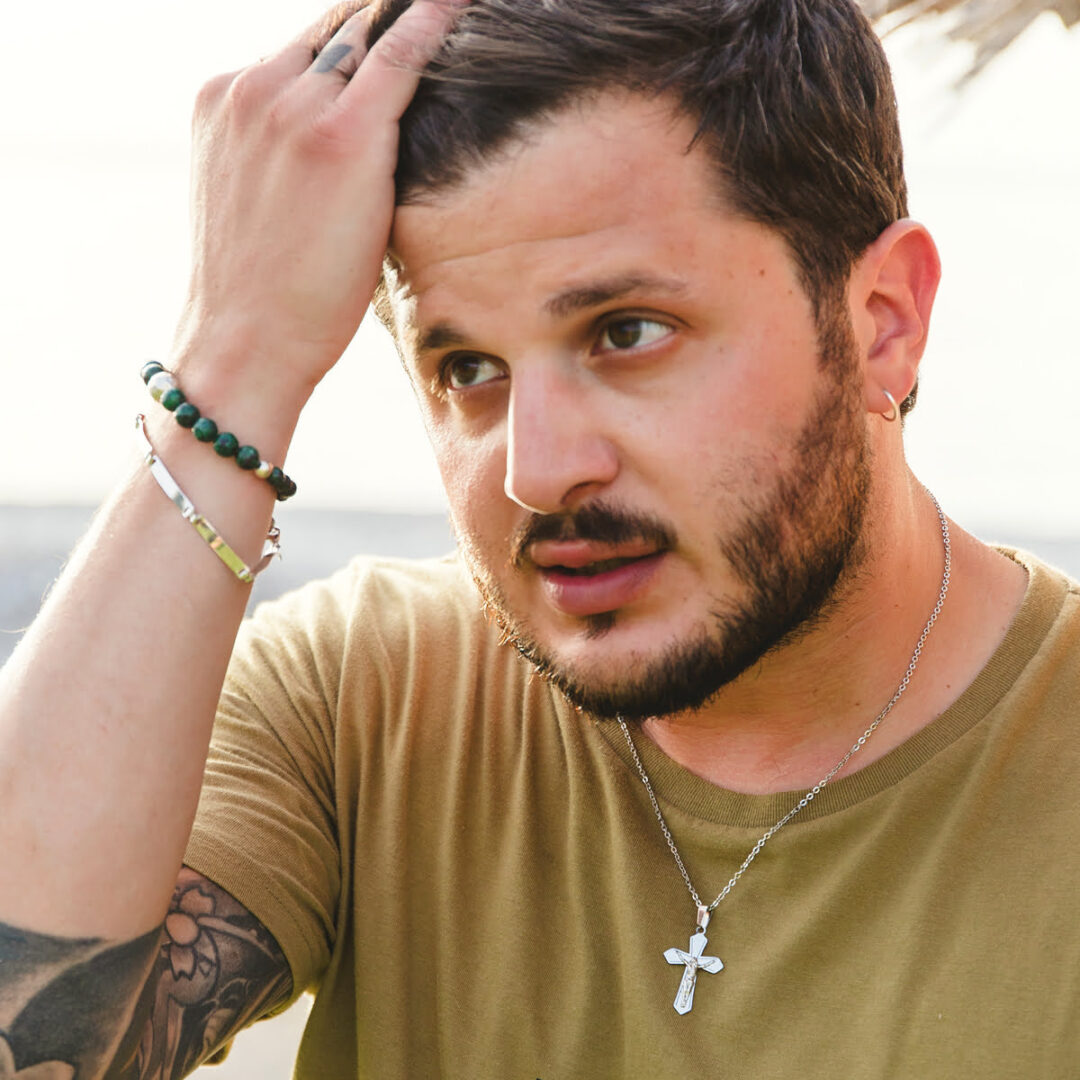 Χειροποίητο βραχιόλι με μεγάλες και μικρές πέτρες από Αχάτη πράσινο ταγιέ και μπίλιες από ασήμι 925°, δεμένο με κορδόνι και ασημένιο κούμπωμα.