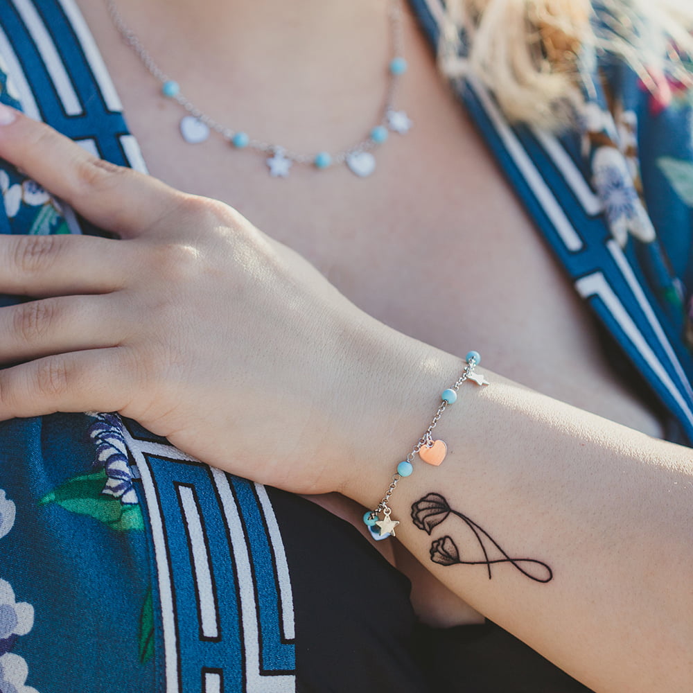 Handmade bracelet with gold plated silver chain 925° decorated with stars, hearts and turquoise stones.