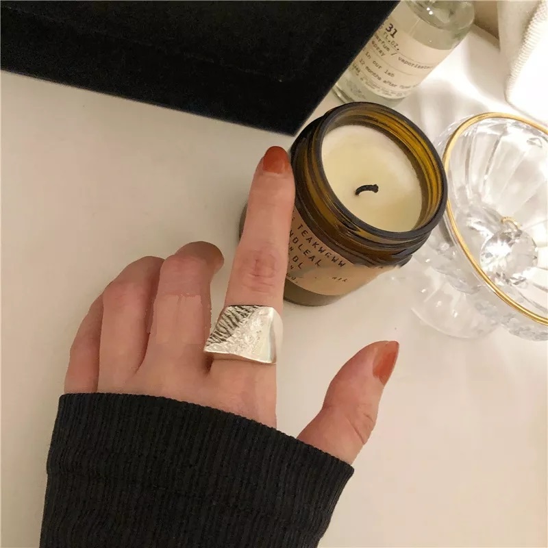 Forged silver ring, irregular line, 15 mm width with adjustable size.
