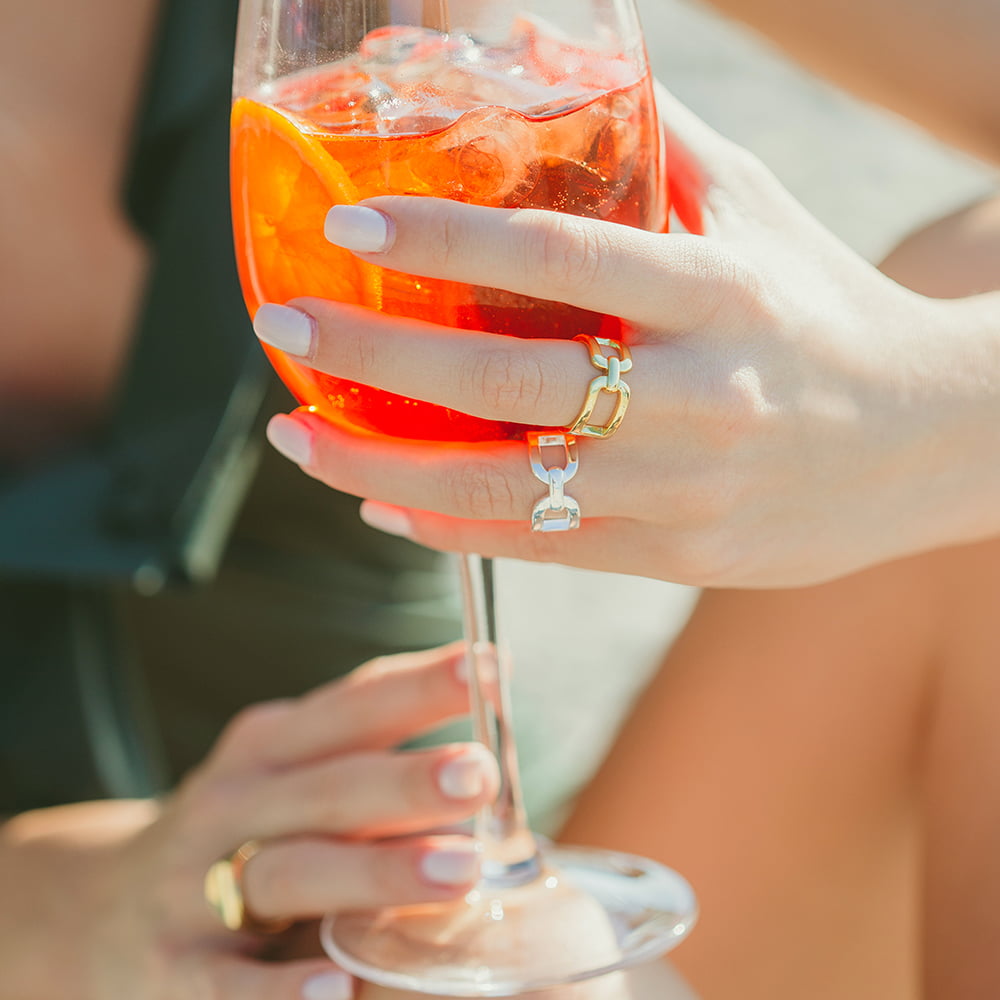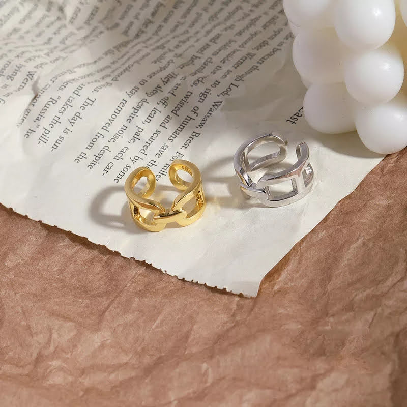 Gold plated DC style ring, 8 mm width, with adjustable size.