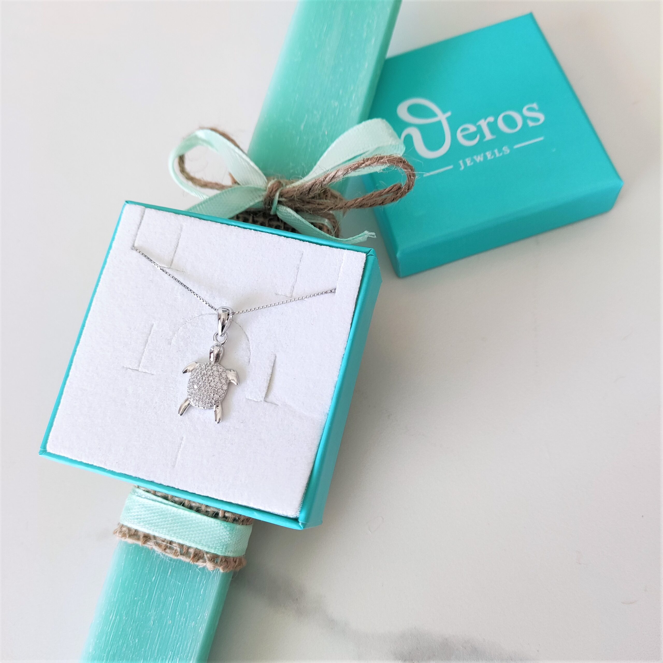 Turtle pendant in silver 925°, decorated with white zircons. Accompanied by a silver chain 925°.