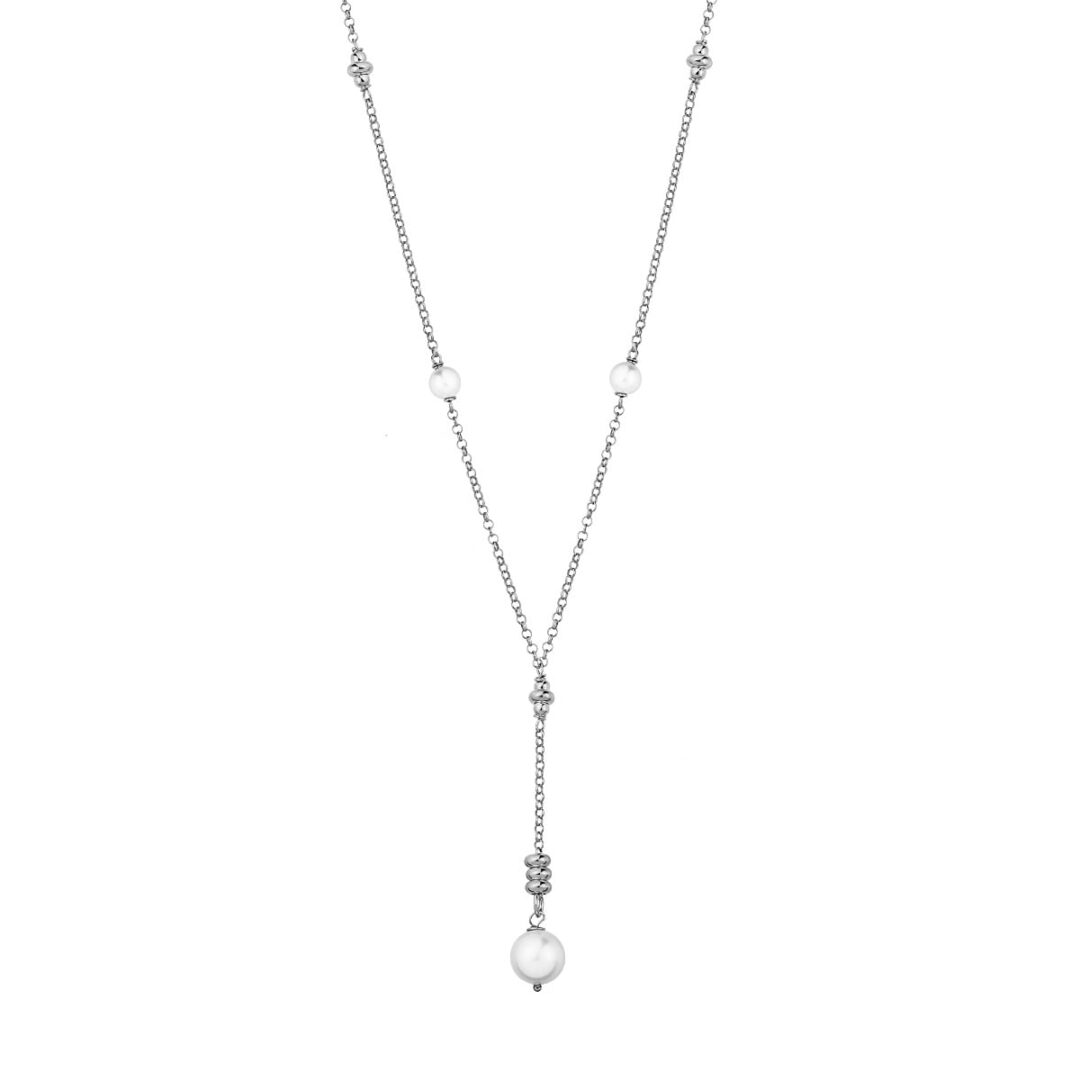 Chain necklace made of platinum plated silver 925°, decorated with synthetic pearls and silver grommets.