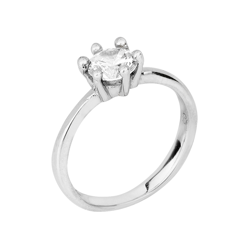 Elegance solitaire ring made of silver 925º, with a 6mm round cubic zirconia, in a base with 6 teeth.