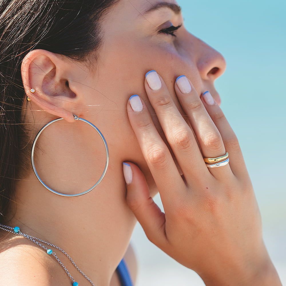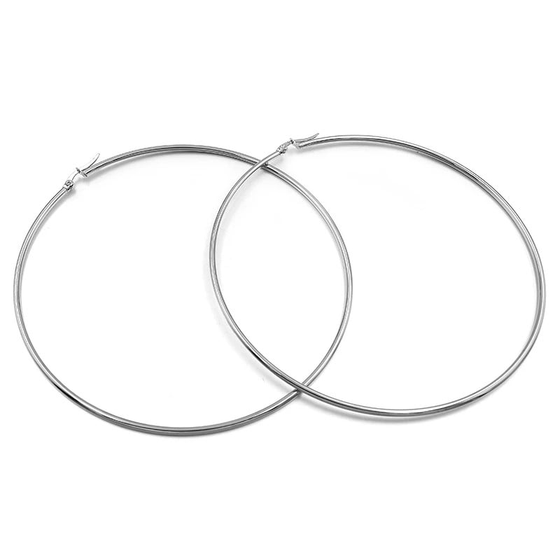 Round hoop earrings in silver color, diameter 6 cm, made of anti-allergic steel, with safety clasp.