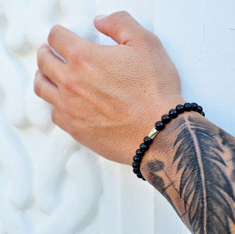 Handmade bracelet with onyx and silver twisted sarnia, made with elastic silicone to fit any size wrist.